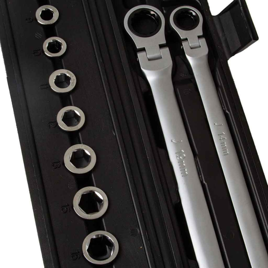 Sada dlhých račňových kľúčov s kĺbom, 15-dielna, 8 - 24 mm v kufríku