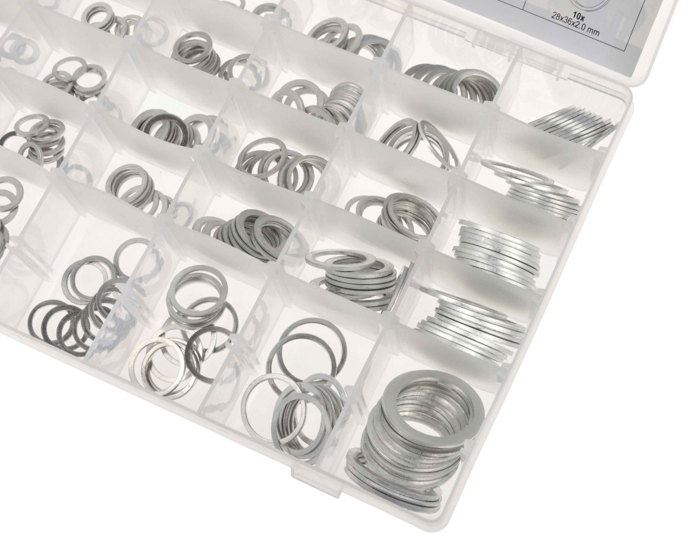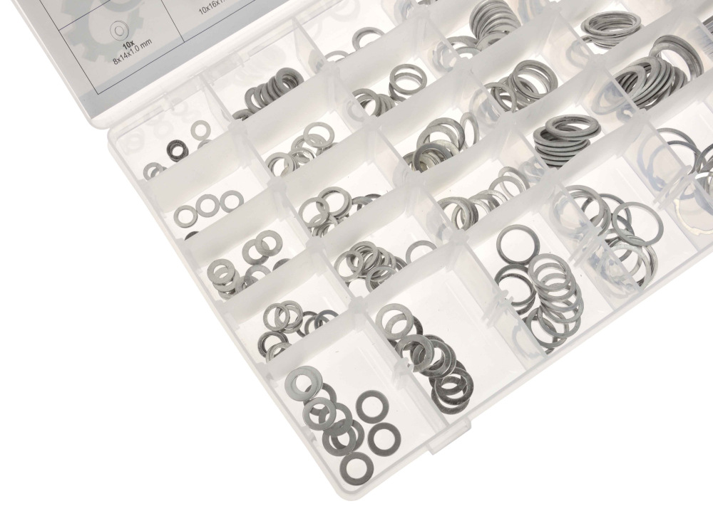 Sada 300 hliníkových podložiek v 30 rôznych veľkostiach.