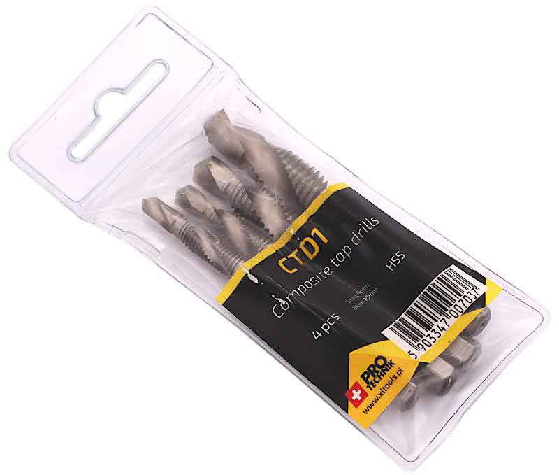 Sada kombinovaných závitníkov s vrtákom M5,6,8,10 HSS, stopka 6HRAN, PRO-TECHNIK