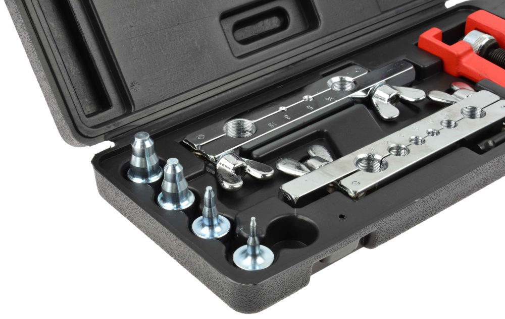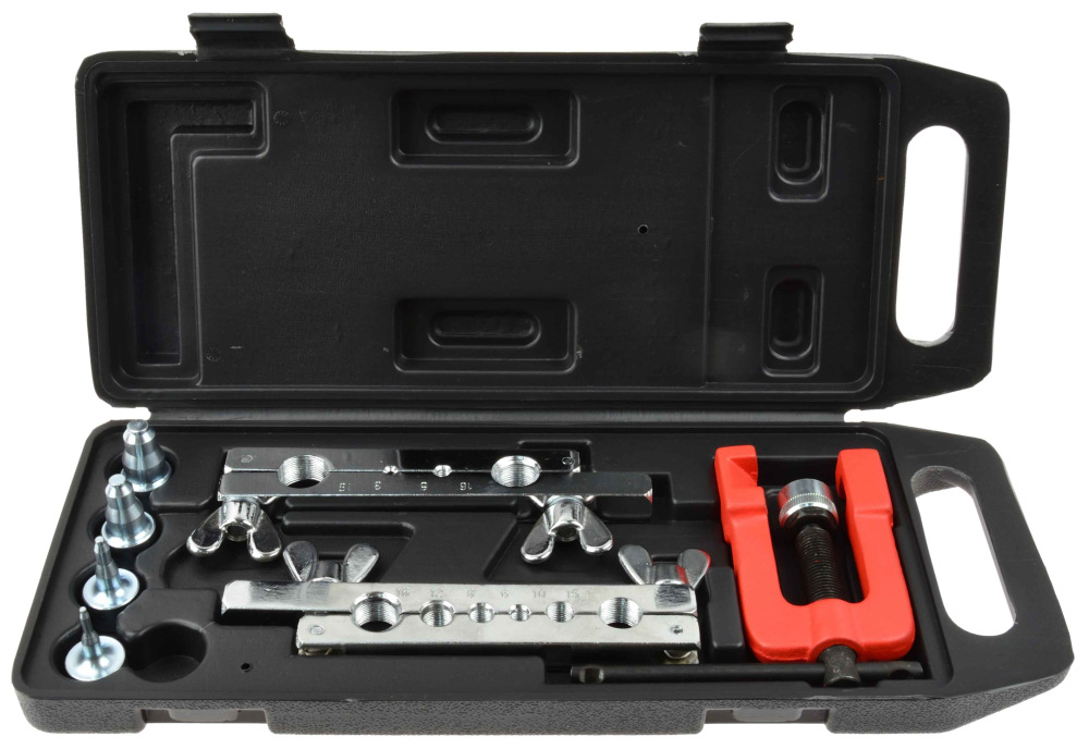 Sada na výrobu brzdových a palivových potrubí. Vhodné na rezanie a rozširovanie medených, mosadzných, hliníkových rúr a rúrok so stenami do hrúbky 1 mm.