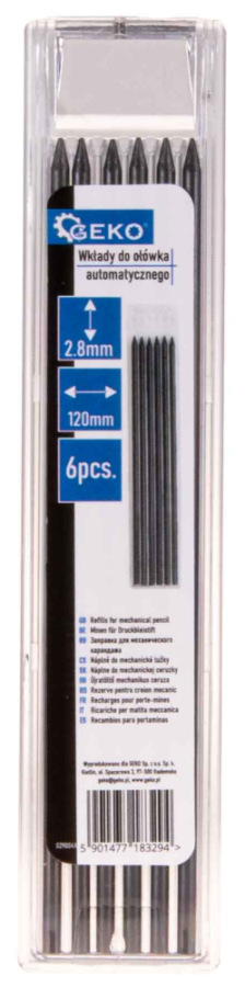 Sada náhradných túh do stolárskej ceruzy 120 x 2,8 mm, 6 ks, GEKO