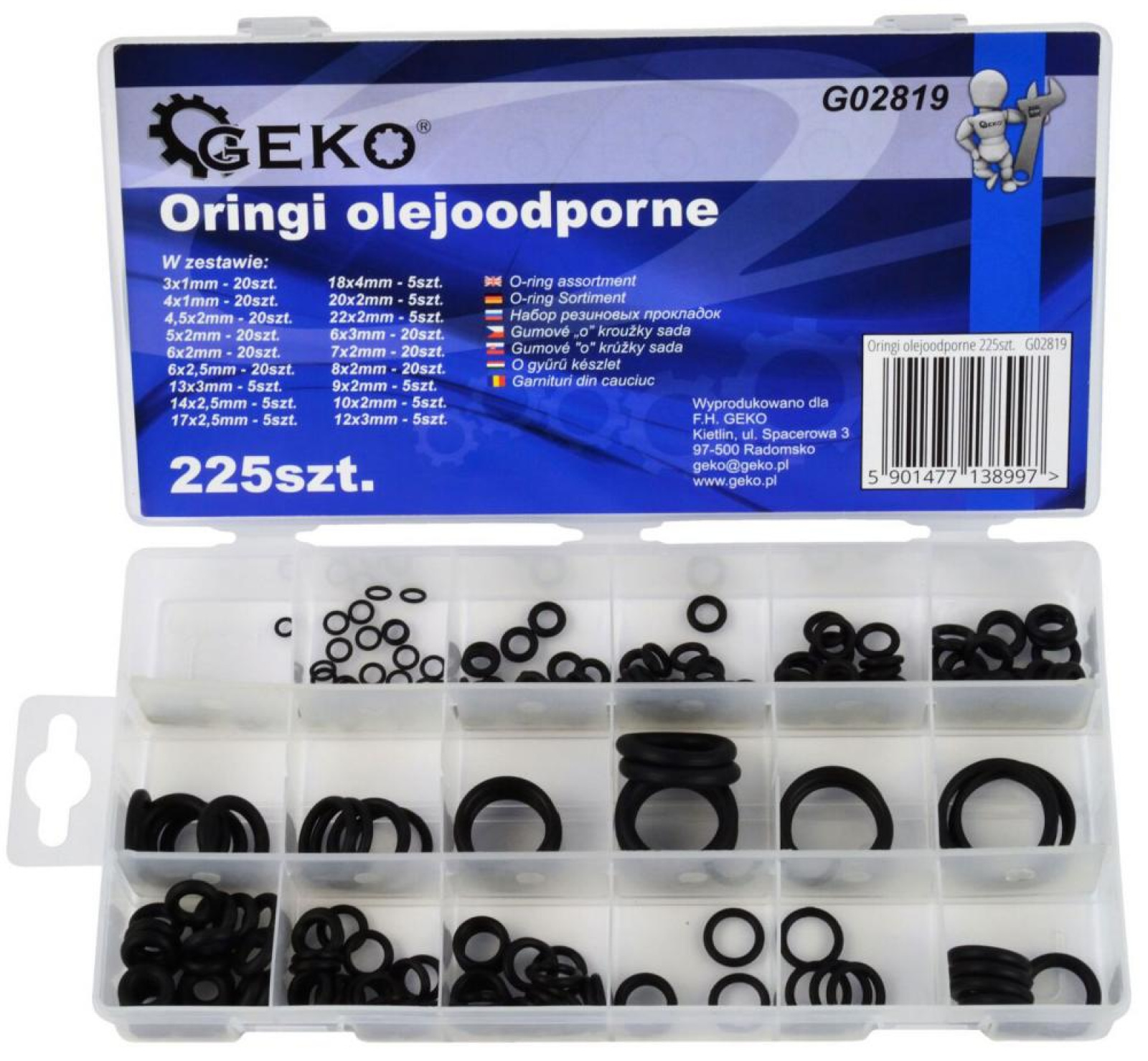 Sada O-krúžkov odolných voči oleju, 225 - dielna, GEKO