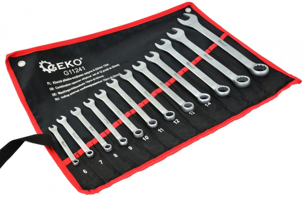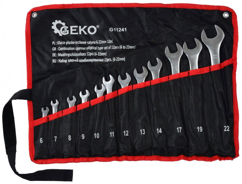 Sada očkoplochých kľúčov, 12-dielna, 6-22 mm v plátenom obale, satinované, GEKO