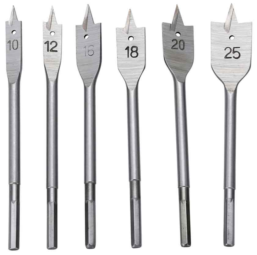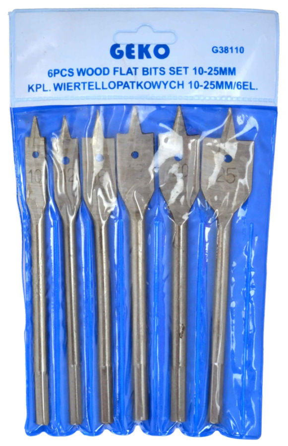 Sada plochých vrtákov do dreva 10, 12, 16, 18, 20, 25 mm, 6-dielna, GEKO