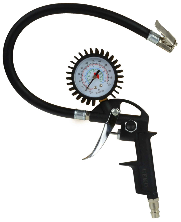 Pištoľ s hrotom a tlakomerom na hustenie kolies