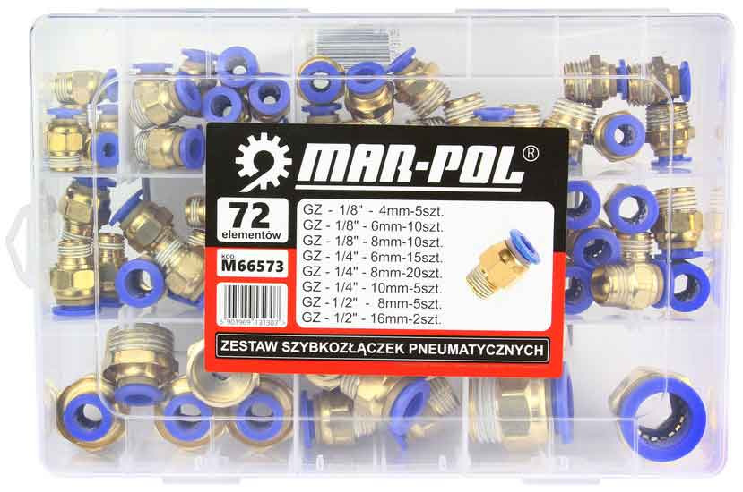 Sada pneumatických rýchlospojok so závitom 4-16 mm, 72 kusov, MAR-POL