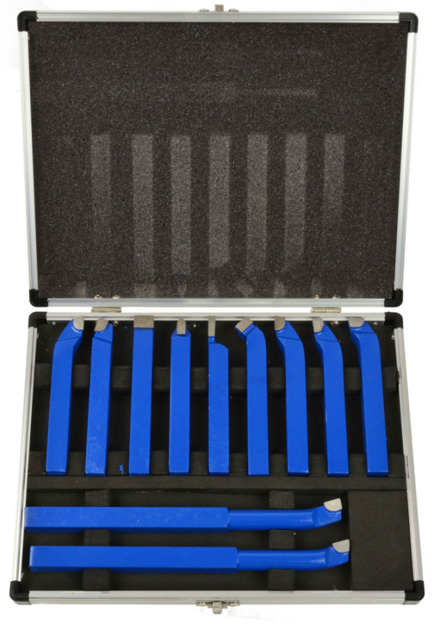 Sada 11 sústružníckych nožov vyrobených z prvotriednej ocele . Čepele z karbidu umožňujú presné obrábanie kovov.