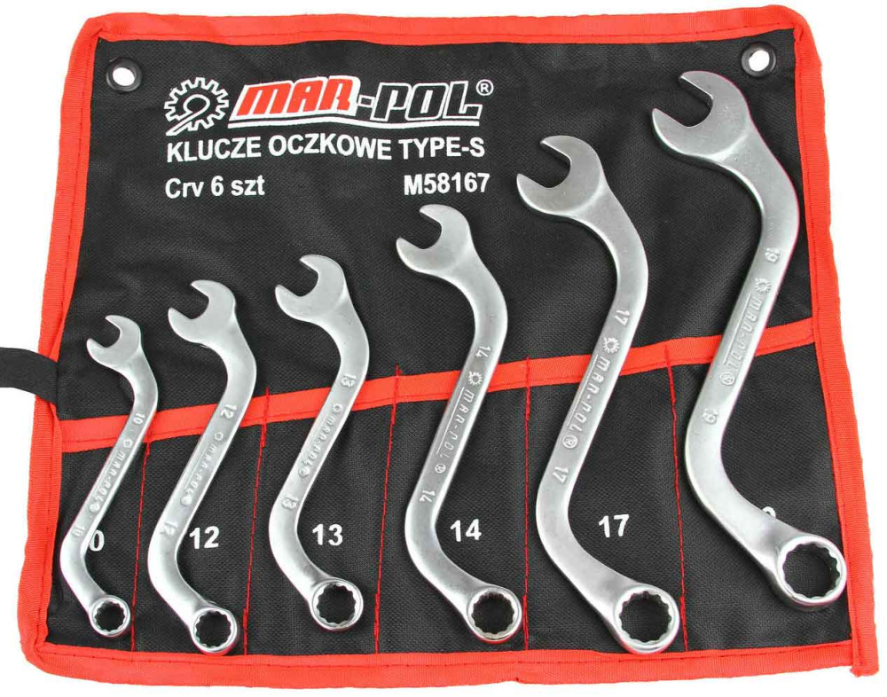 Sada vyhnutých očkoplochých kľúčov, 10-19 mm, MAR-POL