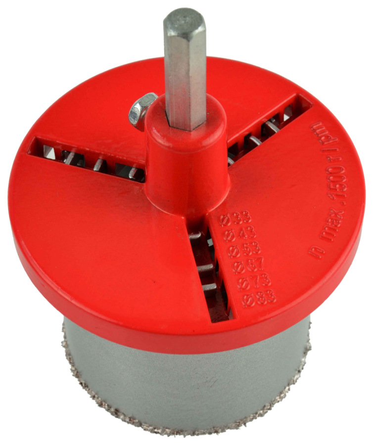 Veľkosti dierových píl: 33, 53, 63, 73 mm