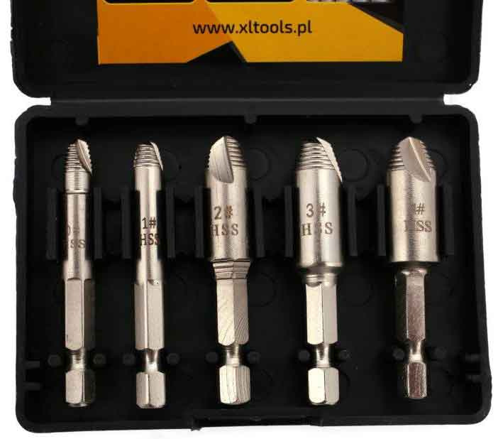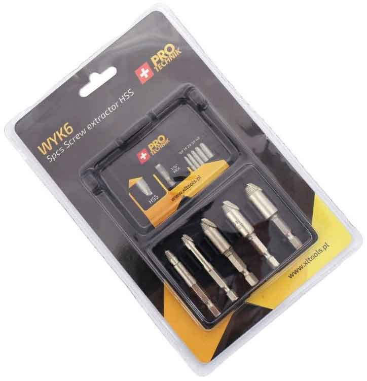 Profesionálna 5-dielna sada vyťahovačov na povoľovanie zlomených skrutiek. Sú vyrobené z rýchloreznej ocele HSS , ktorý zaisťuje odolnosť a odolnosť náradia Sada obsahuje 5 vyťahovačov s rôznymi priemermi a šesťhrannou stopkou 1/4" (6,35 mm), vďaka čomu je nenahraditeľným nástrojom v dielni alebo autoservise.