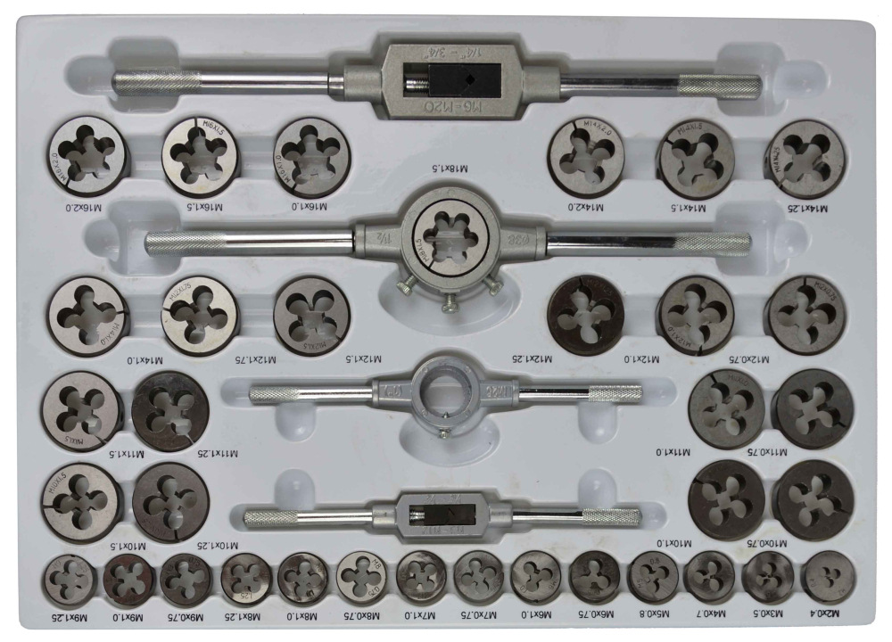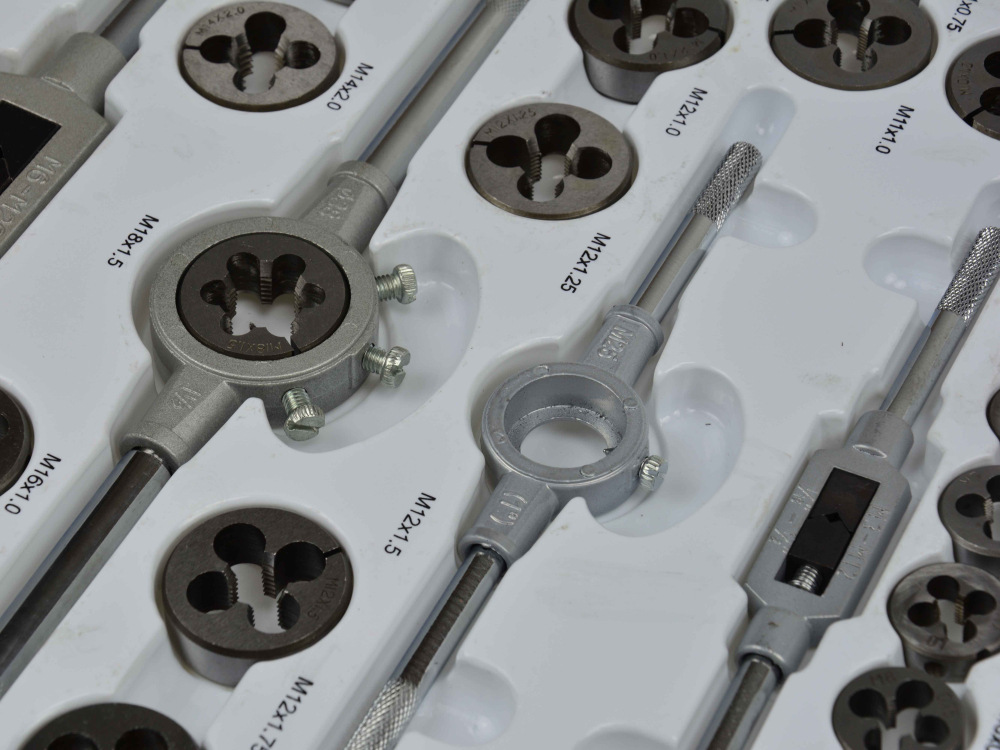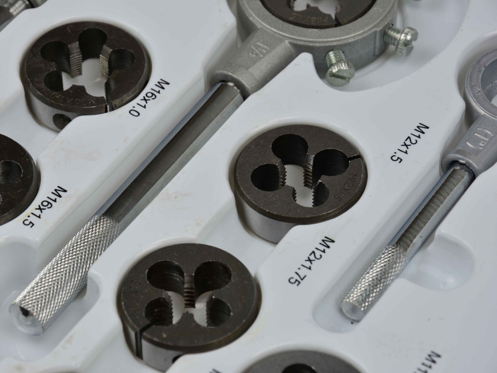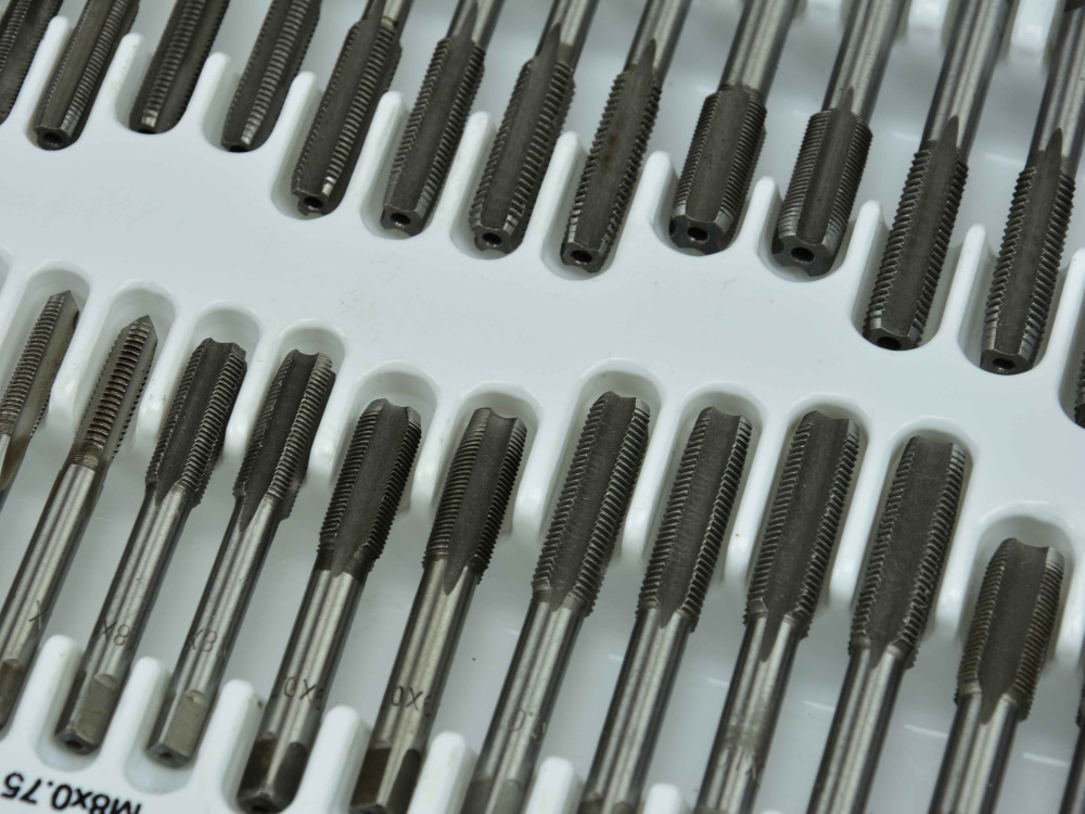 Sada závitníkov a závitníkov s príslušenstvom.