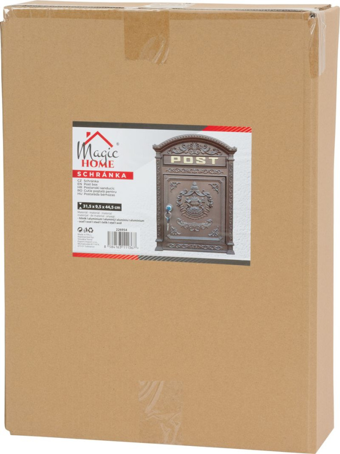 Dekoratívna poštová schránka Edgar v hnedej farbe zaujme klasickým reliéfnym dizajnom s nápisom POST. Je vhodná na umiestnenie pri dome, na plot alebo múr a poskytuje praktický priestor na doručovanie bežnej pošty.