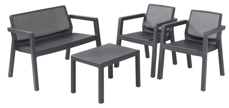 Set terasový Allibert EMILY, graphite, stôl, 2x kreslo, 1x dvojkreslo, bez podušiek