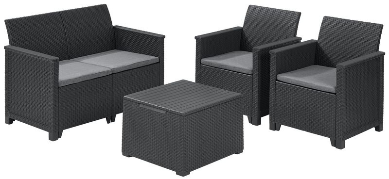 Set terasový Allibert EMMA, graphite/coolgray, stolik, lavica, 2x kreslo