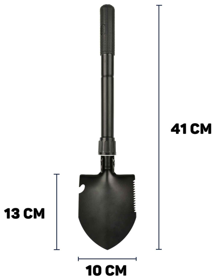 Multifunkčná skladacia lopata 4 v 1. Tento nástroj je mimoriadne užitočný na kempovanie a lesné výlety. Vďaka skladaciemu dizajnu zaberá lopata veľmi málo miesta, vďaka čomu je ideálnou voľbou pre survivalistov, hľadačov kovov a nadšencov terénnych aktivít. Lopata je vyrobená z odolnej, korózii odolnej uhlíkovej ocele a jej najväčšou výhodou je jej kompaktná veľkosť a všestrannosť. Môže sa používať ako tradičná lopata a s malými úpravami sa dá premeniť na mini krompáč. Pracovná časť lopaty je tiež vybavená pílou na drevo a otváračom na fľaše.