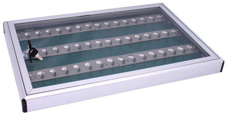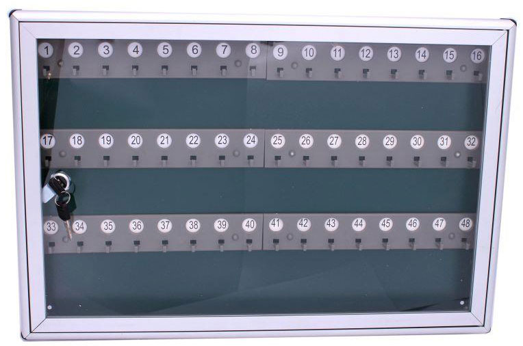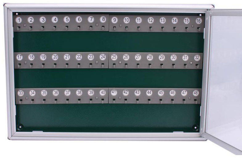 - Použitie: Vydávajte a vracajte kľúče na očíslovaných hákoch; pravidelne kontrolujte stav a úplnosť kľúčov pomocou priehľadných dverí.