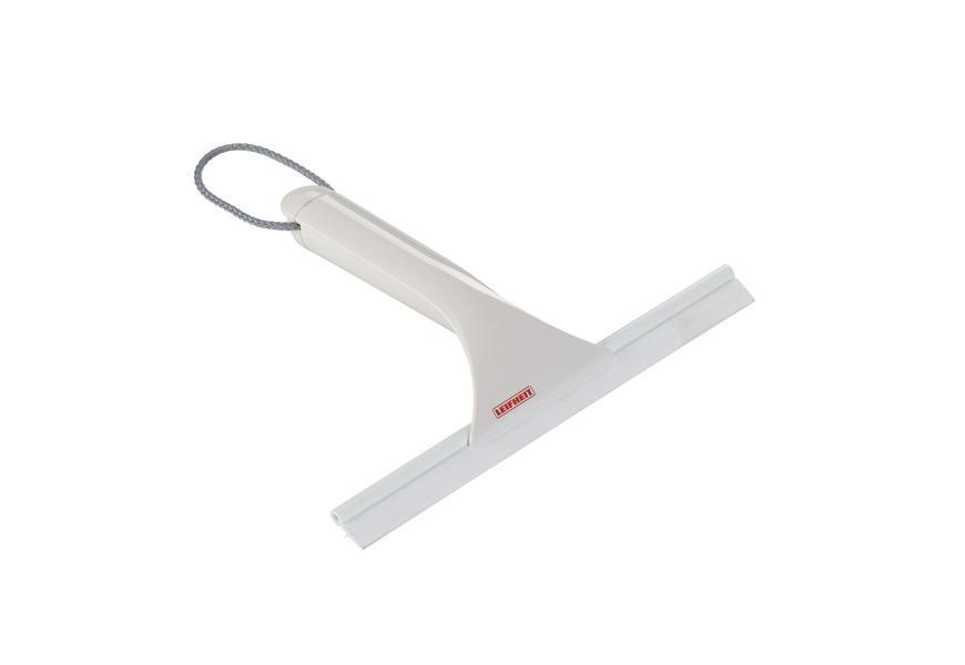 Ideálna stierka pre sprchové kúty zo skla, akrylu alebo dlaždíc, stieracia časť je z bielej gumy, teda nerobí škvrny, vrátane remienka na zavesenie, šírka 24 cm, záruka 3 roky.