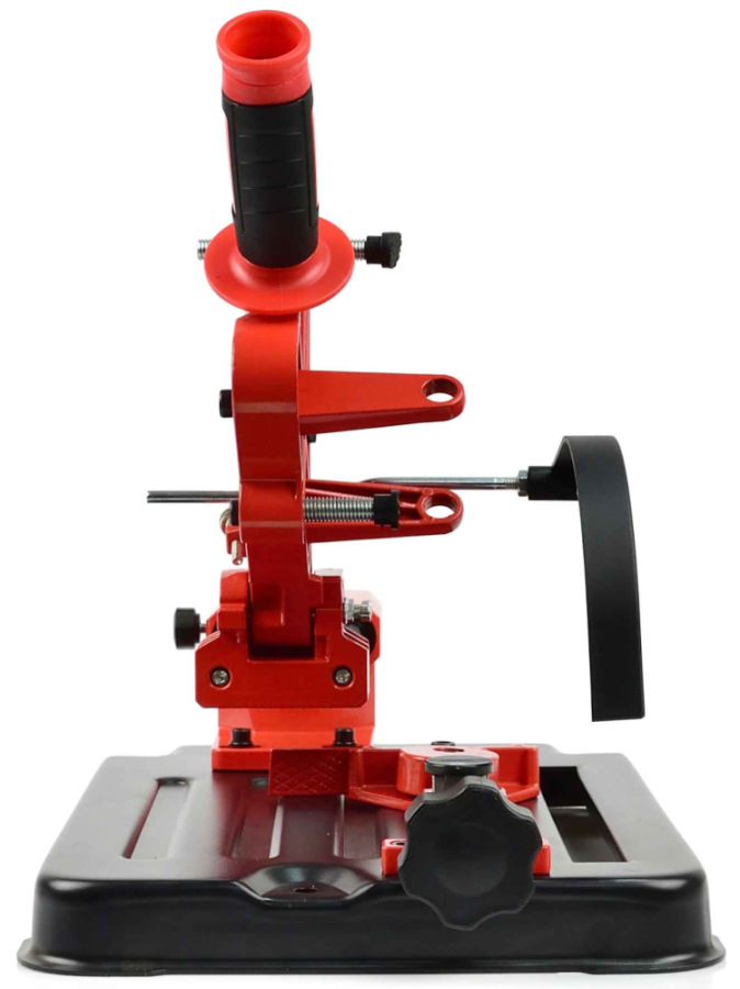 - Univerzálny montážny systém umožňuje pevné uchytenie prakticky akejkoľvek uhlovej brúsky s priemerom kotúča 115 - 125 mm do statívu.