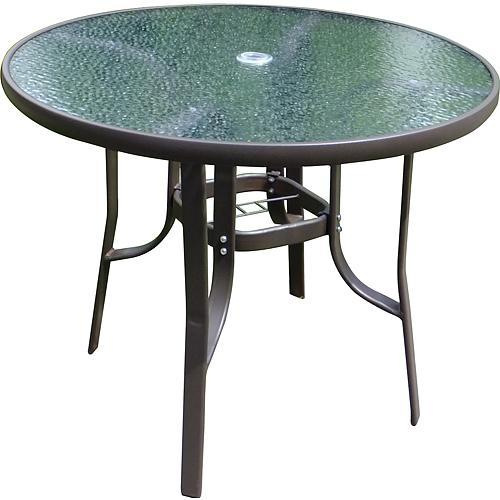 Záhradný stôl má okrúhly tvar. Je vhodný pre vonkajšie posedenie. Stôl pôsobí mohutne, vďaka kovovej košntrukcii. Vrchná užívateľská plocha je vyrobená z 5 mm hrubého tvrdeného skla. Celá konštrukcia je čierna, vrchná sklenená časť je mierne priehľadná. Výhodou mohutnej konštrukcie je, že je stôl schopný bezproblémovo udržať slnečník. Slnečník je možné umiestniť do stredu stola, kde je naň pripravený otvor. Priemer užívateľskej plochy je 120 cm a výška stola je 70 cm.