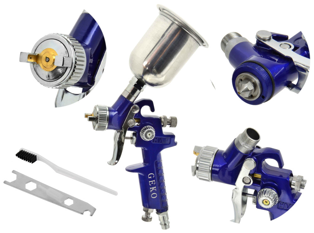 Striekacia pištoľ HVLP MINI s hornou kovovou nádobkou 125 ml, tryska-0,8 mm, GEKO