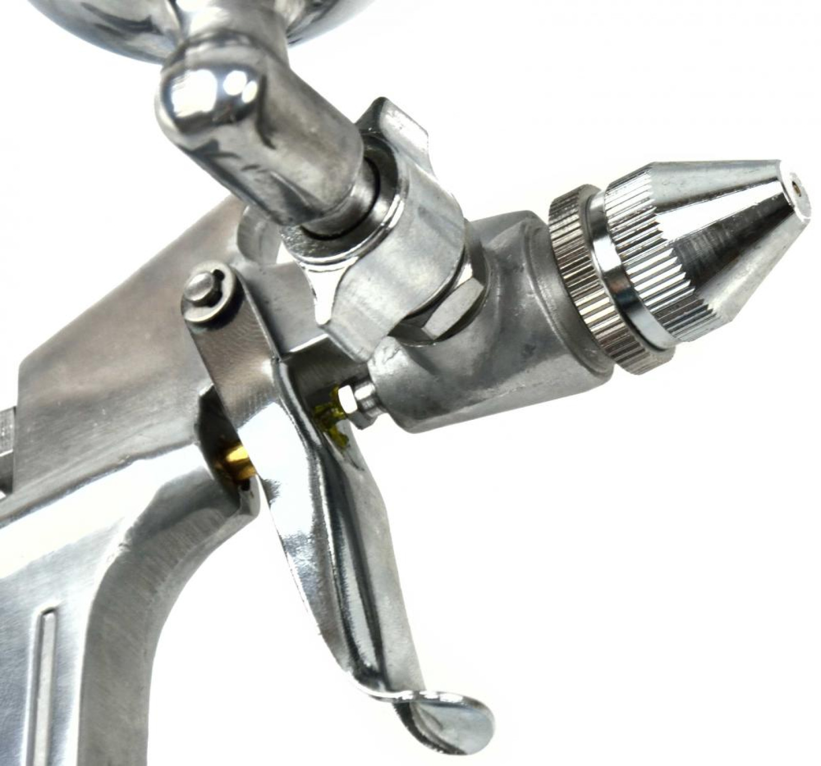 Striekacia pištoľ určená na nanášanie farieb a lakov stlačeným vzduchom. Ideálne pre dokončovacie a opravárske práce. Vylepšená konštrukcia dýzy (mosadz) zaisťuje rovnomerné striekanie a vynikajúcu kvalitu povrchovej úpravy. Zvýšená účinnosť aplikácie vyplývajúca z konštrukcie, ktorá umožňuje nižší tlak materiálu a vzduchu.