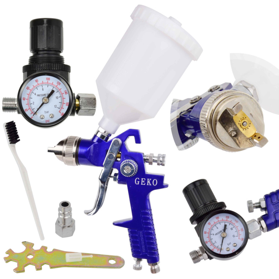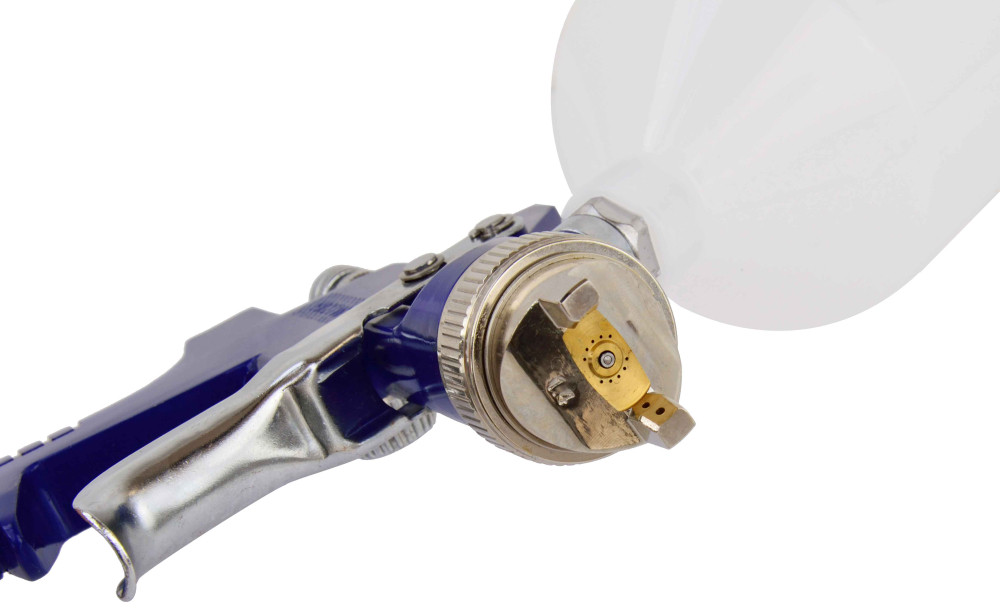 Profesionálna lakovacia pištoľ HVLP . Vyrobené z najkvalitnejších materiálov. Pištoľ je poháňaná stlačeným vzduchom . Vzduch z kompresora sa dostáva do nádrže na farbu a do trysky pištole. Výsledný tlak "vytlačí" kvapalinu z nádrže a nastriekané častice farby sú vrhané cez trysku na lakovaný povrch.