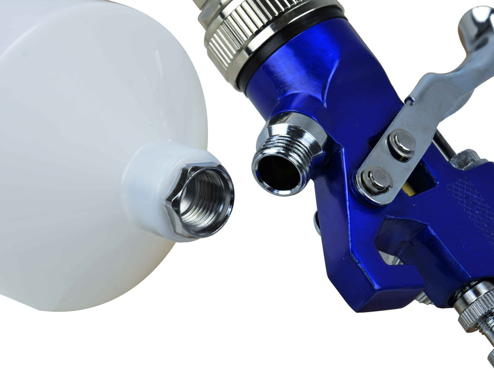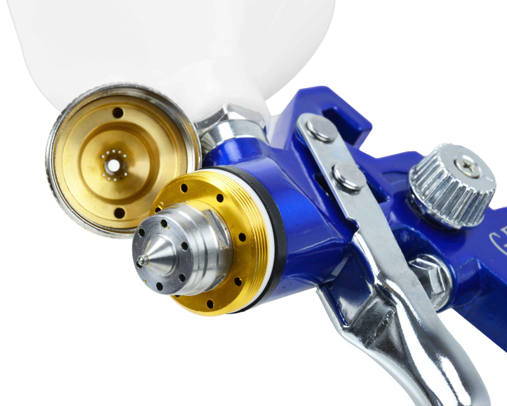 Profesionálna striekacia pištoľ HVLP vybavená 600 ml hornou nádržou a 1,4 mm dýzou. Pištoľ je vybavená nezávislým mechanizmom aktivácie vzduchu a farby.