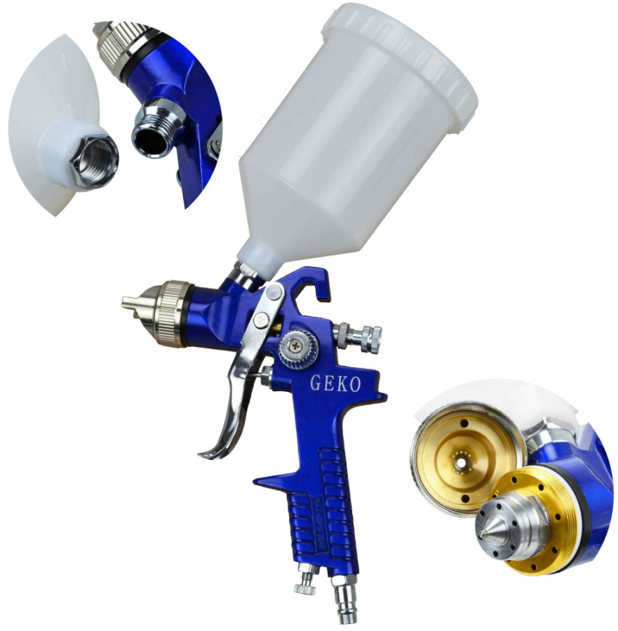 Striekacia pištoľ HVLP s hornou nádobkou 600ml, tryska 1.4mm, závit M16x1,5, GEKO