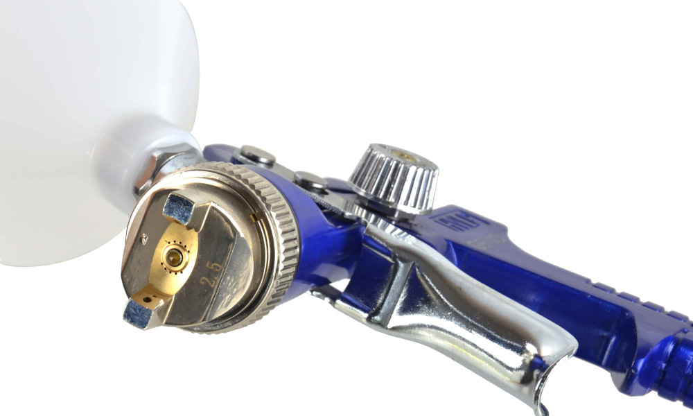 Použitá technológia HVLP (High Volume Low Presure) umožňuje vypustenie veľkého objemu farby, zatiaľ čo nízky tlak vzduchu tlačí farbu cez dýzu . V dôsledku toho sa vyfukovaným vzduchom stráca menej farby a viac padá na lakovaný povrch, čo znižuje spotrebu farby.