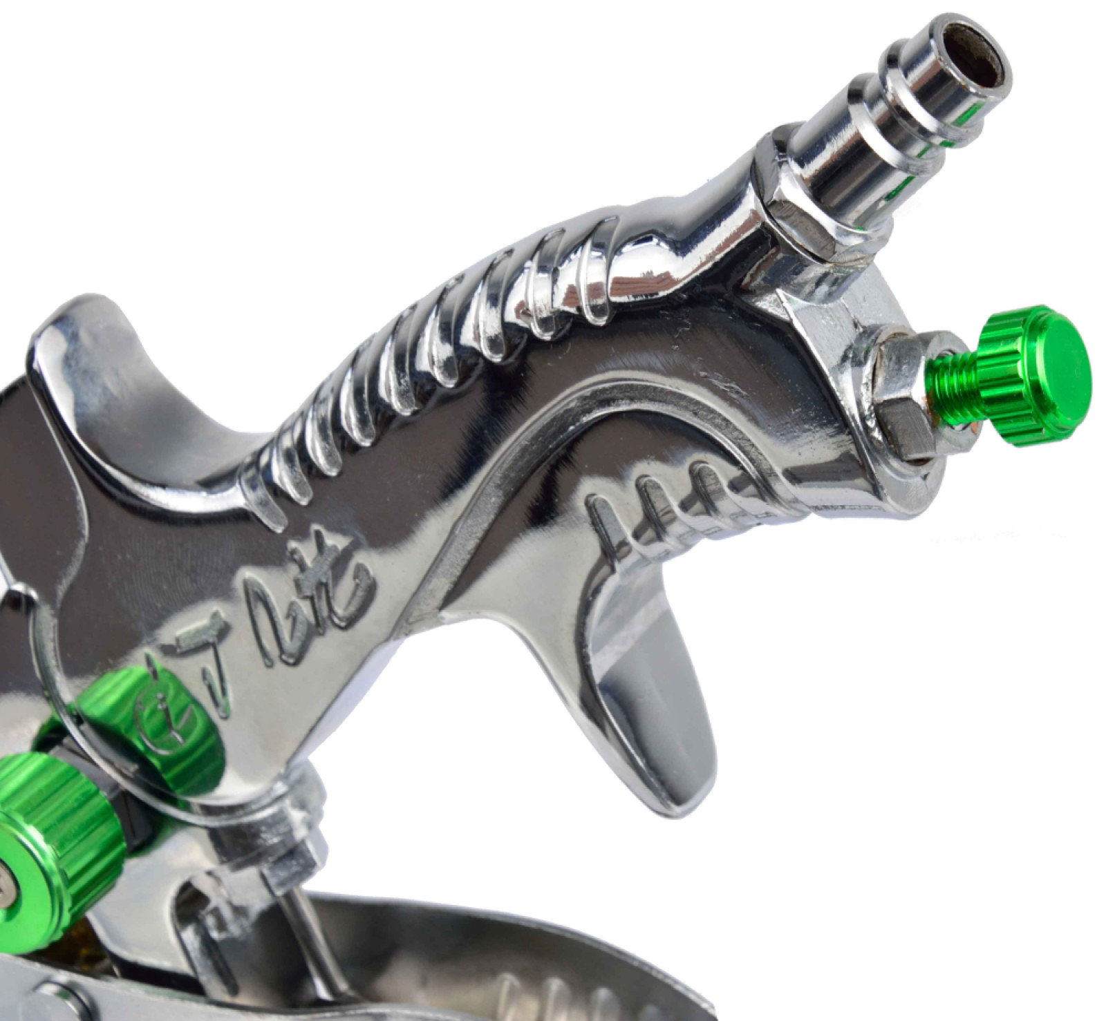 Použitá technológia HVLP (High Volume Low Pressure) umožňuje veľký objem vytlačenej farby pri súčasnom nízkom tlaku vzduchu, ktorý pretláča farbu cez trysku . Výsledkom je, že vo vyfukovanom vzduchu sa plytvá menej farby a viac padá na lakovaný povrch, čo znižuje spotrebu farby.