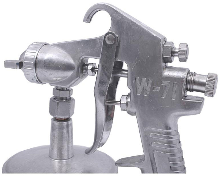 Striekacia pištoľ je nástroj určený na nanášanie farieb, lakov a základných náterov pomocou stlačeného vzduchu. Vybavený spodným kovovým zásobníkom s objemom 600 ml, ktorý uľahčuje používanie a umožňuje prácu na väčších plochách bez nutnosti častého prikladania materiálu. Tryska s priemerom 1,5 mm zaisťuje presné nanášanie materiálu a prúdenie vzduchu zboku, zhora a zdola umožňuje rovnomernú distribúciu laku. Pištoľ je vyrobená z hliníka, čo zaručuje jej ľahkosť a ergonómiu, ako aj odolnosť proti korózii. Nastavenie prúdu, tlaku vzduchu a množstva vyhadzovaného materiálu umožňuje prispôsobiť náradie individuálnym potrebám užívateľa.