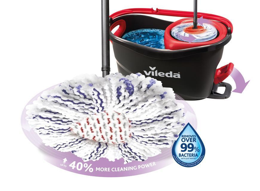 Upratovacia súprava Vileda TURBO 3v1 obsahuje strapcový mop a vedro so šliapacím pedálom. Mop : Strapcový rotačný mop z mikrovlákna rýchlo a efektívne vyčistí vašu podlahu. Jedinečný umývací návlek kombinuje tri druhy strapcov: