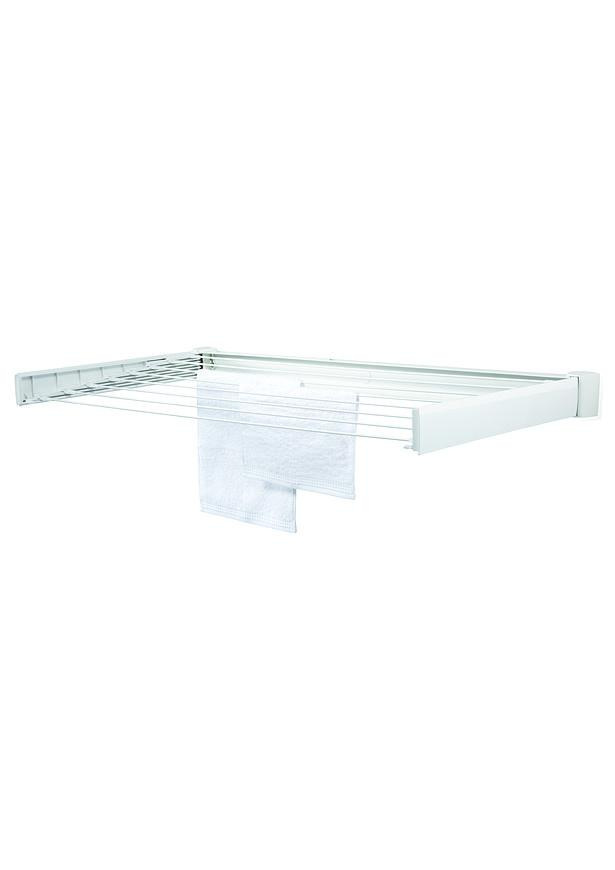 Praktický skladací nástenný sušiak na bielizeň, šetrí miesto, vhodný na vonkajšie použitie, chránené proti korózii, šírka tyčí 100 cm, 7,2 m sušiacej plochy = 1 práčka bielizne, záruka 3 roky.