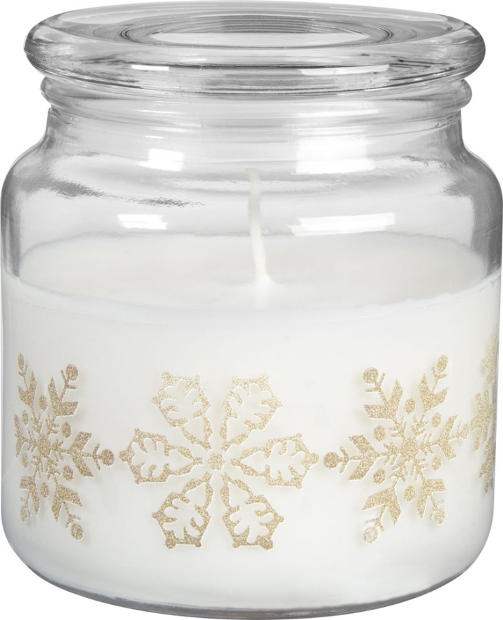 Sviečka bolsius Glass Snehové vločky, vanilka, 99/100+L mm,
