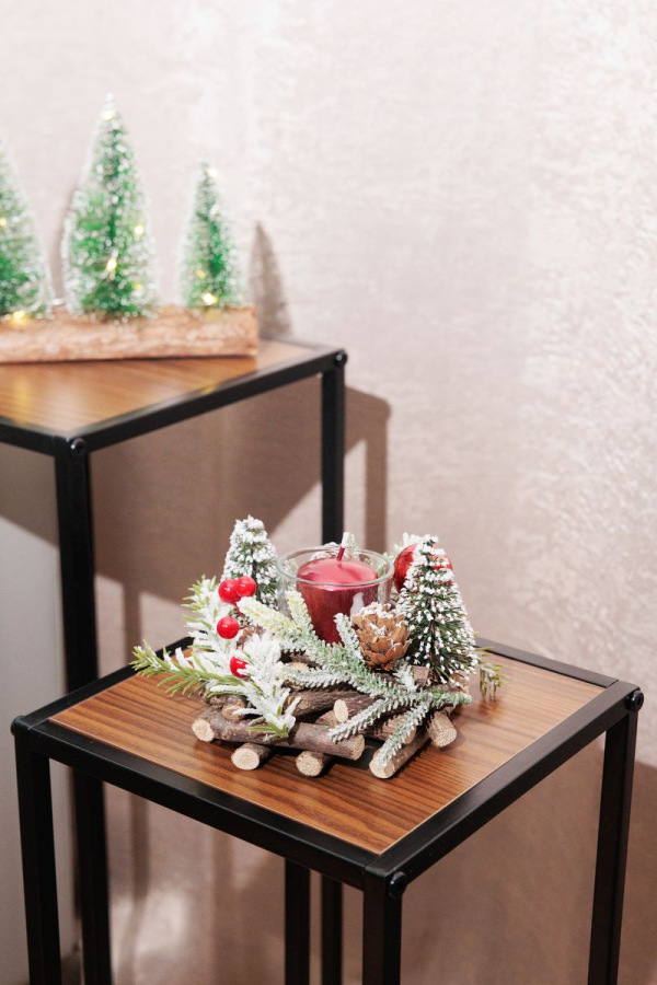 Vytvorte vo svojom domove kúzelnú vianočnú atmosféru s prírodným svietnikom MagicHome. Dekorácia je vyrobená z prírodných materiálov a zdobená drobnými vianočnými stromčekmi,