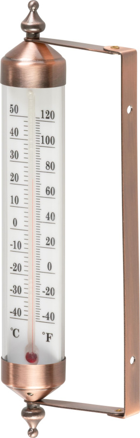 Vonkajší kovový teplomer Strend Pro meria teplotu v rozsahu od 50°C do -40°C. Rozmery: 245x80x28 mm.