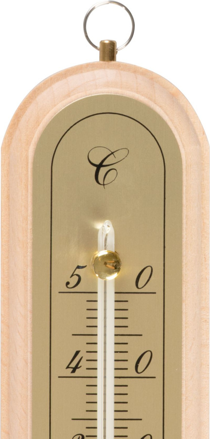 Vnútorný teplomer s dreveným podkladom, meria teplotu v rozsahu od 50°C do -20°C