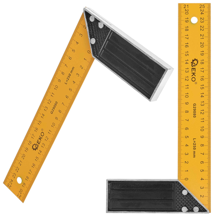 Tesársky uholník s rozmermi 250 mm je nepostrádateľným nástrojom v dielni každého kutila, tesára alebo staviteľa. Umožňuje rýchle a presné určenie pravých uhlov a čiar rezu , vďaka čomu je ideálny na rezanie dosiek, panelov, sadrokartónu, líšt a konštrukčných prvkov. Ideálny pre tesárske práce, stavebníctvo, rekonštrukcie a všade tam, kde je nevyhnutná presnosť a opakovateľnosť rozmerov.