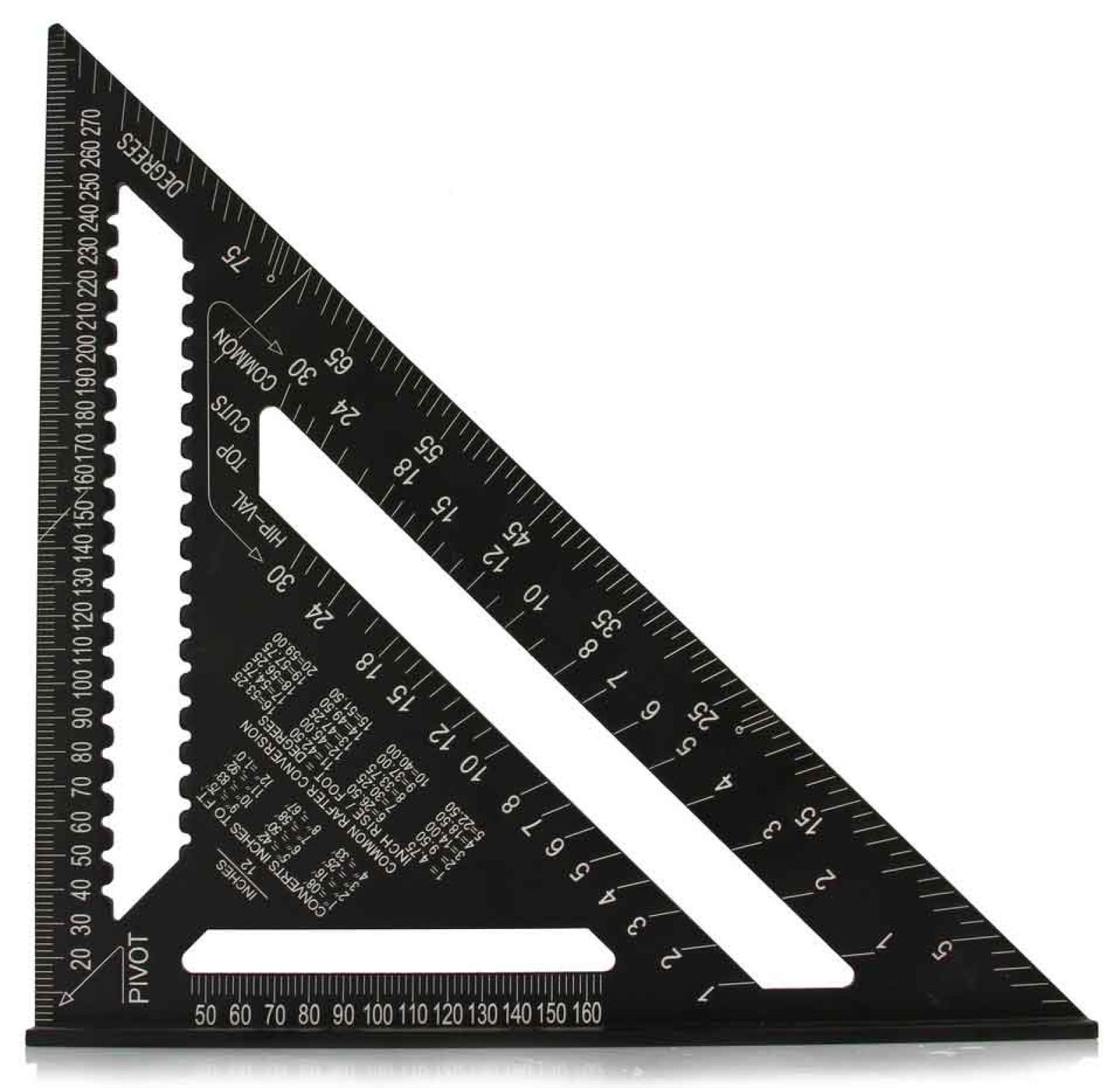 Tesársky trojuholník vyrobený z hliníkovej zliatiny, robustný a odolný pri používaní. Je ideálne pre všetky bežné stavebné, tesárske a klampiarské práce