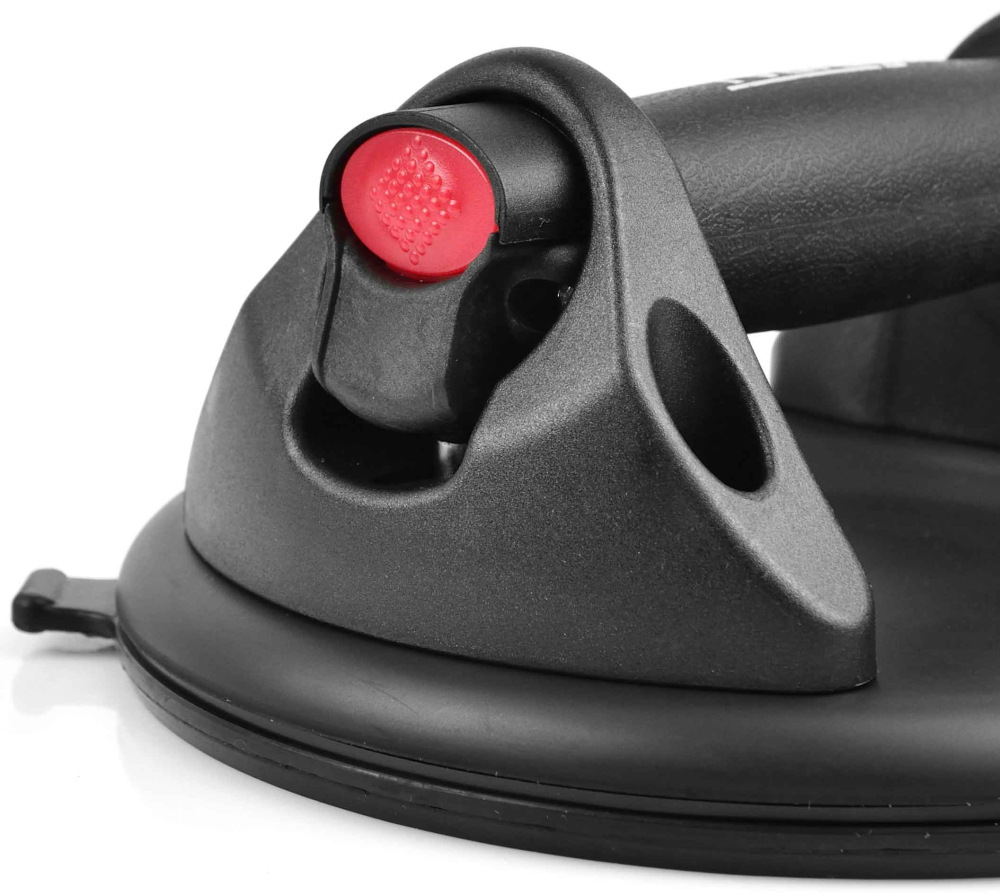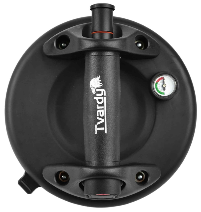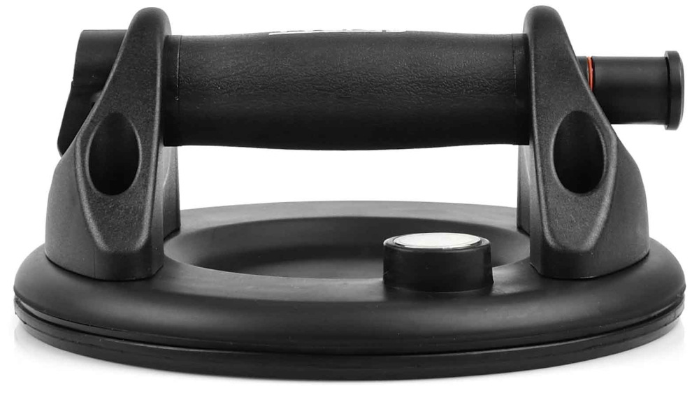 Držiak-Vákuová prísavka na sklo s tlakomerom určená na prenášanie rôznych prvkov s hladkým povrchom. Valec pumpovacieho systému je vyrobený z odolného hliníka potiahnutého príjemným silikónovým materiálom, ktorý zaisťuje bezpečné a isté uchopenie pri prenášaní.