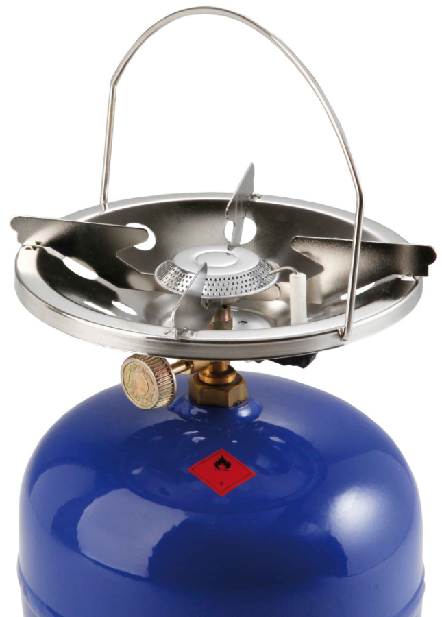 Kempingový varič na propán-bután je určený k vareniu a ohrievaniu pokrmov.Pripája sa priamo k 2 kg propán-butánovej fľaši.Varič má piezo zapaľovanie. Varič je možné pripojiť len na 2 kg PB fľašu.