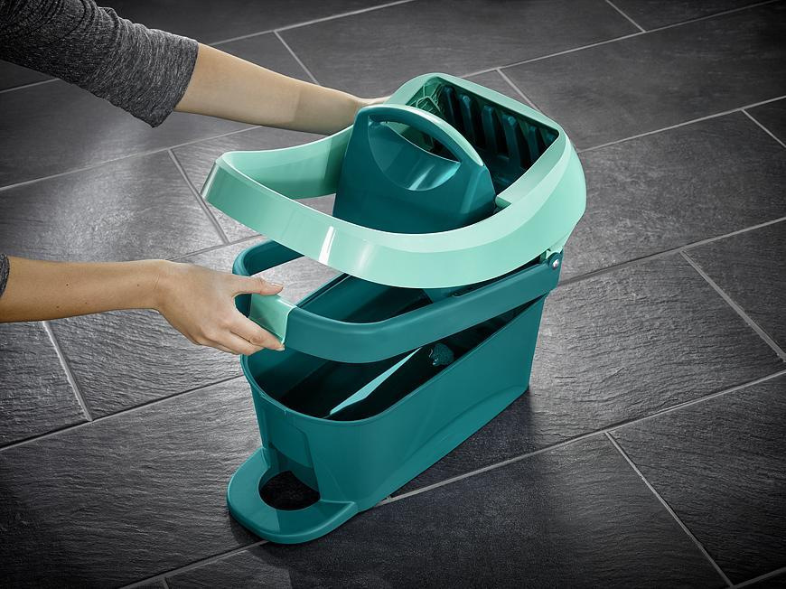 Univerzálne vedro so žmýkacím systémom, 8l, vhodné pre mopy Leifheit Profi alebo iné mopy s drôtenou konštrukciou. Žmýkanie bez namáčania rúk v špinavej vode a bez ohýbania chrbta. Žmýkací nástavec je ovládaný nášľapom a ideálne vyžmýka návlek, aj pre vytieranie podláh citlivých na vlhko. Novo jednoduchšie žmýkanie vďaka väčšiemu pedálu. Pevné držadlo a integrované kolieska pre ľahkú manipuláciu. Nižšia hmotnosť – iba 2,4 kg. Vysoká stabilita vďaka protišmykovým krúžkom na spodnej strane vedra.