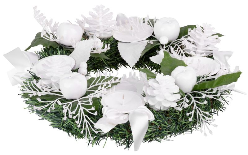 Veniec MagicHome Vianoce, prírodný, adventný, biely, 25 cm