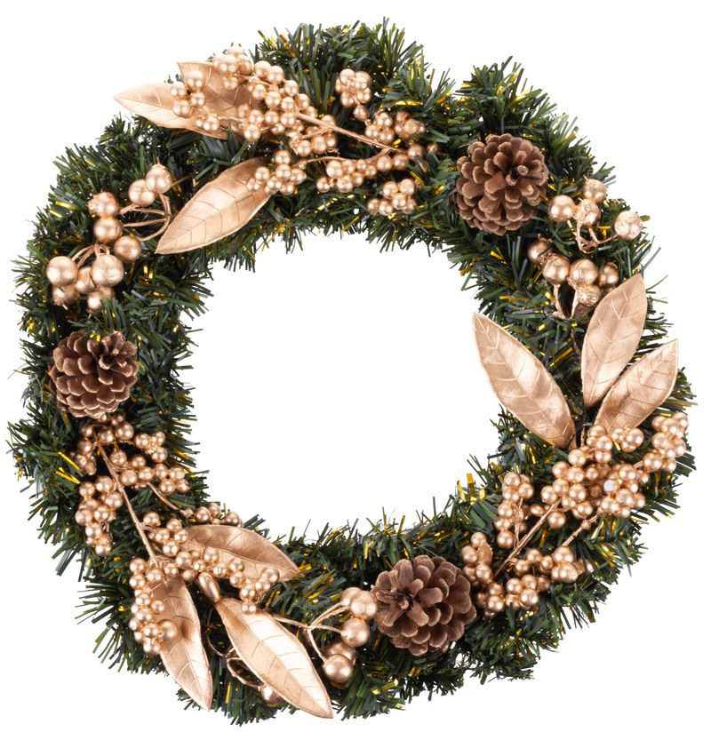 Veniec MagicHome Vianoce, prírodný, bronzový, 35 cm