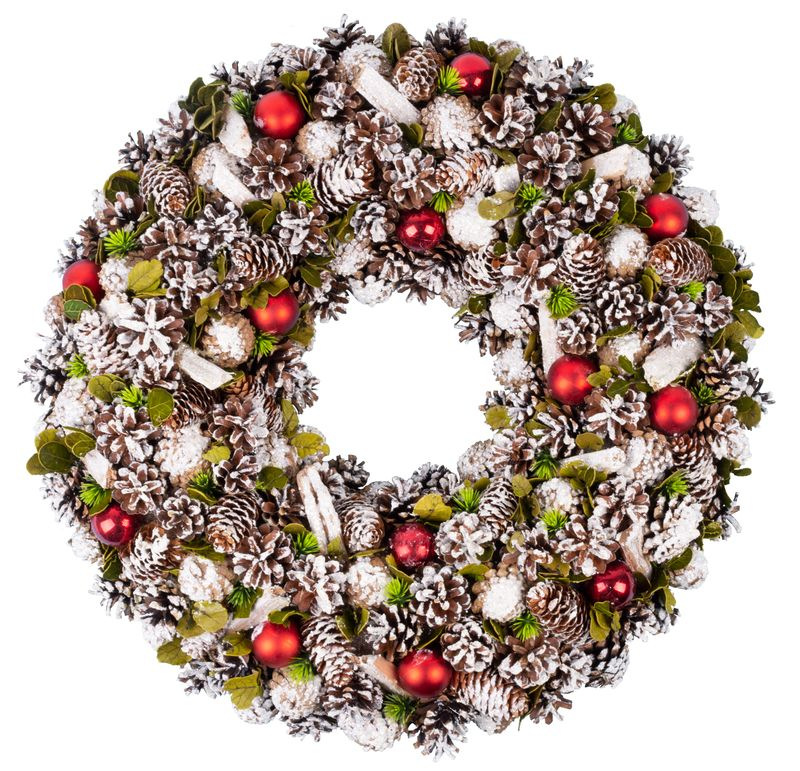 Veniec MagicHome by nemal chýbať vo výbave vášho interiéru počas vianočných sviatkov. Je to vkusný, prírodný, závesný veniec. Farba je červená. Jeho rozmer je 58x58x13 cm.