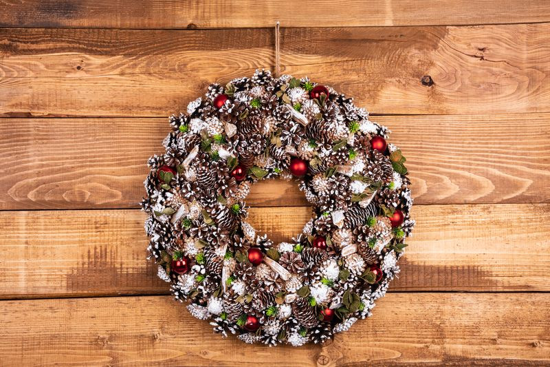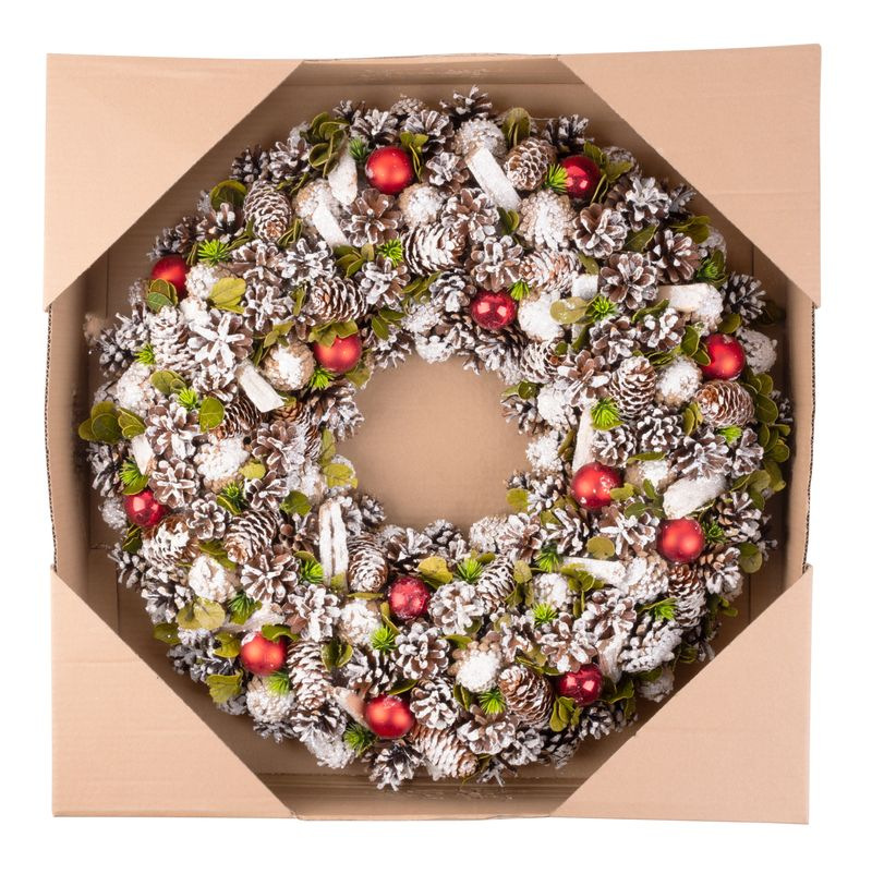 Veniec MagicHome Vianoce, prírodný, červený, závesný, 58x58x13 cm