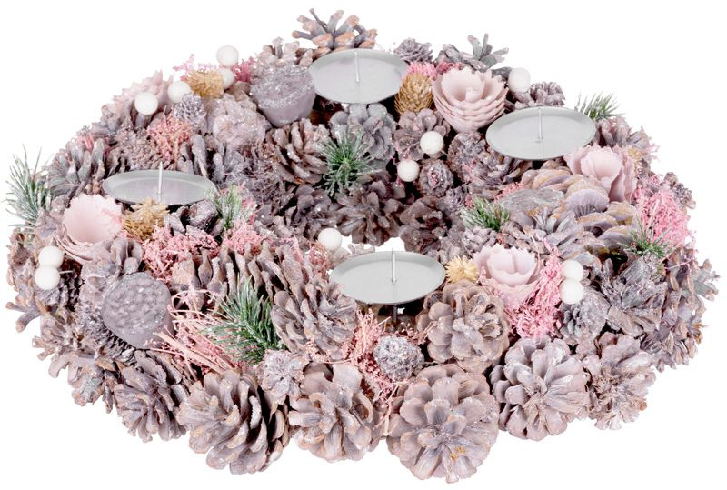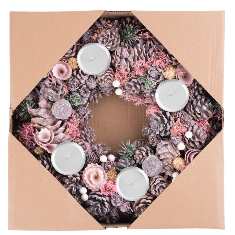 Veniec MagicHome Vianoce, ružový, adventný, 38 cm