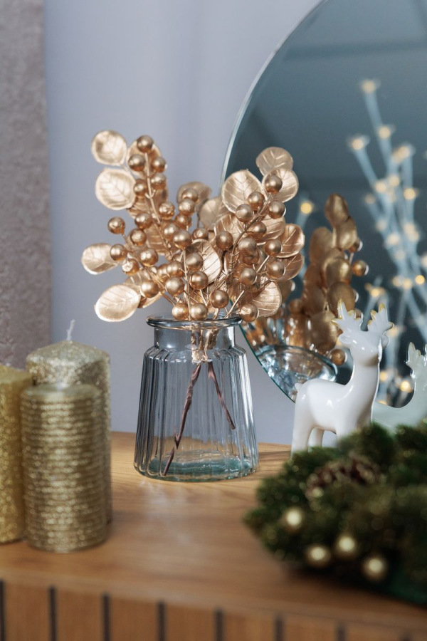 Vetvička MagicHome Vianoce je krásnou sviatočnou dekoráciou, ktorá vynikne vo vianočných aranžmánoch, kyticiach alebo ako samostatný doplnok. Je zdobená jemnými bobuľkami v zlatej farbe, ktoré pôsobia elegantne a slávnostne.