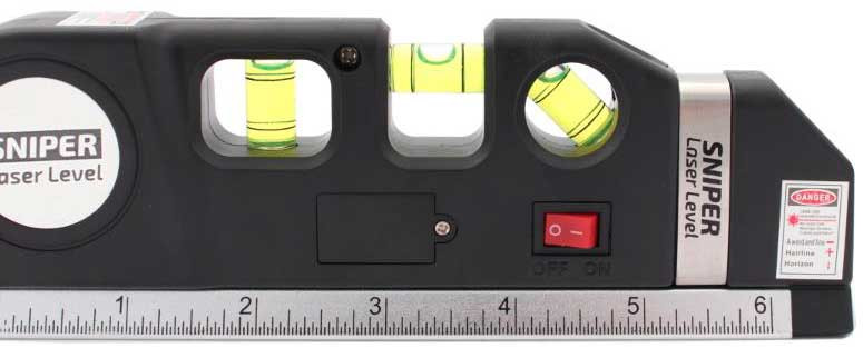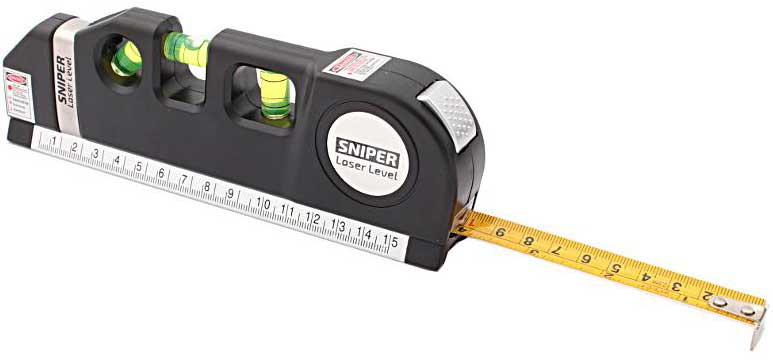 Meter obsahuje 3 libely pre presnejšie meranie, zvinovací meter, dve hliníkové pravítka s laser manuálne nastaviteľný na zobrazenie vertikálnej, horizontálnej línie, alebo kríža.