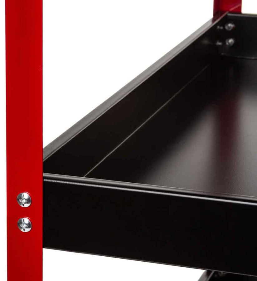 Oceľový vozík s tromi policami. Je ideálny pre dielne a služby a je tiež dobrým riešením pre domácich majstrov. Uľahčuje to prácu, pretože každý nástroj máte vždy po ruke. Je vybavená štyrmi kolesami, dvoma pevnými a dvoma otočnými, a kovovou rukoväťou, ktorá uľahčuje premiestňovanie. Vozík je možné použiť aj na prepravu malých balíkov.
